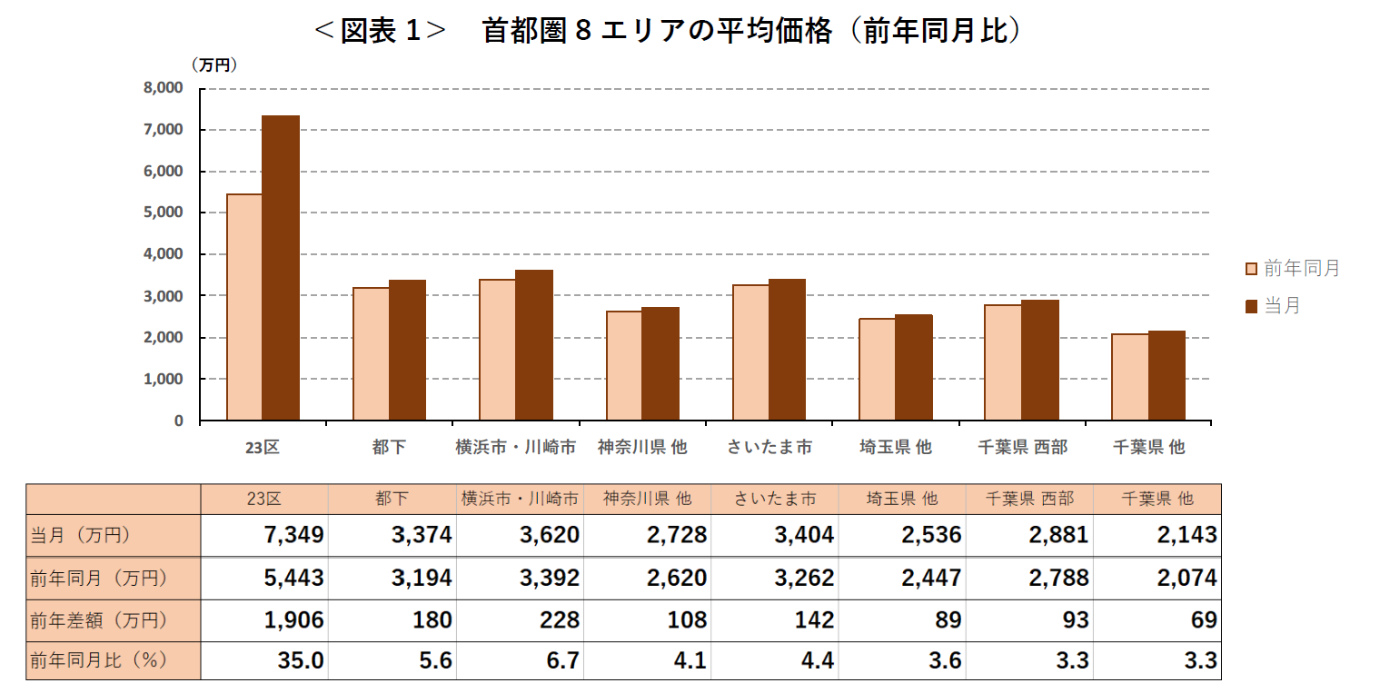 東京23区の前年同月比は調査開始以来最高の+35.0%に。