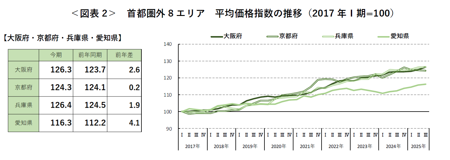◆ 北海道、愛知県、大阪府、兵庫県、福岡県の5エリアで2017年Ⅰ期以降最高額に。