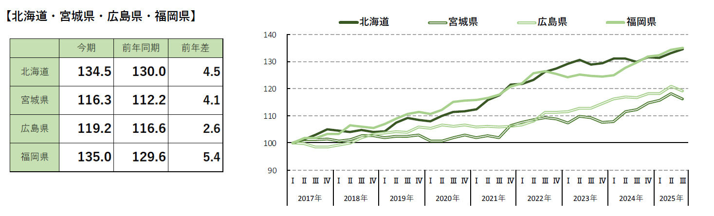 ◆ 4期連続で全8エリアが前年同期を上回る。宮城県、京都府、広島県は前期比下落。