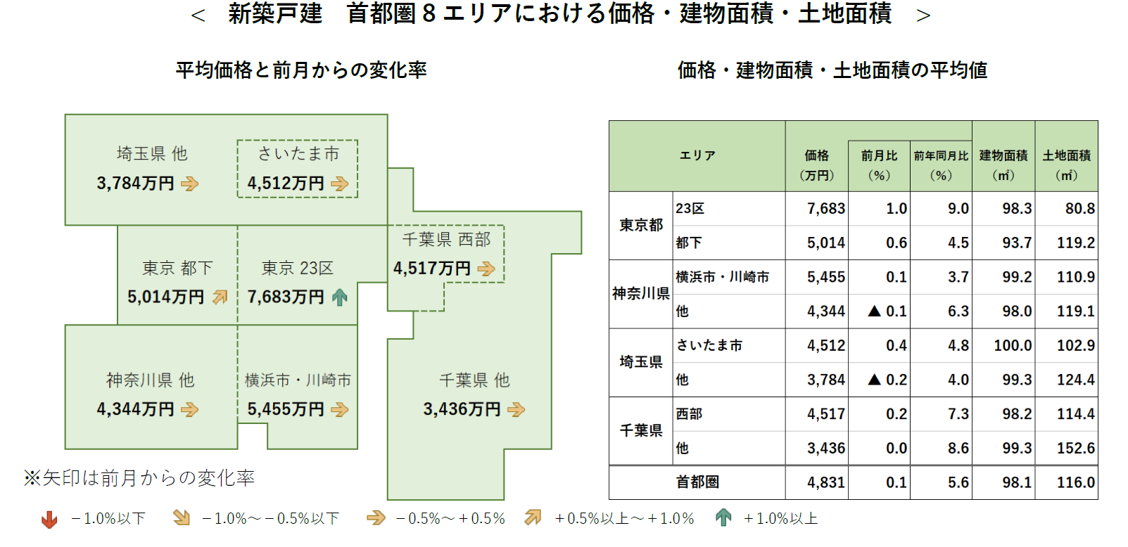 ◆ 首都圏の新築戸建の平均価格は4,831万円で、前月比+0.1%と2カ月連続で上昇。