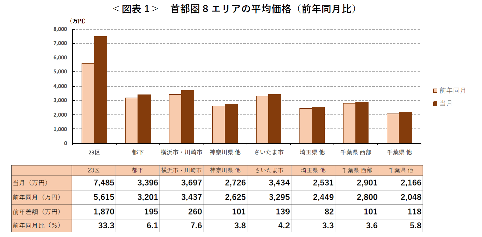 <図表1> 首都圏外8 エリアおよび東京23 区の平均価格(前年同期比)
