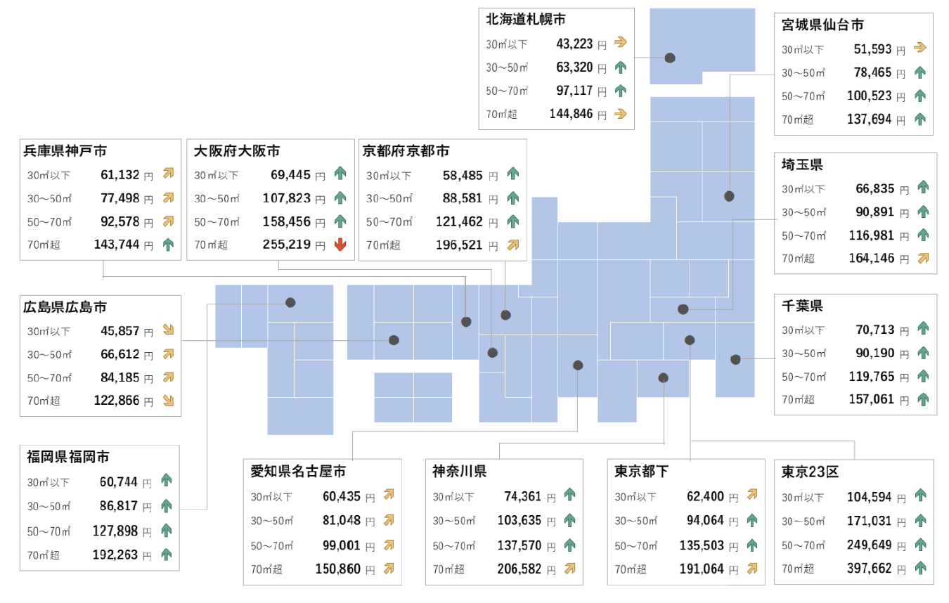 全国主要都市の賃貸マンション・アパート募集家賃動向(2025年10月)