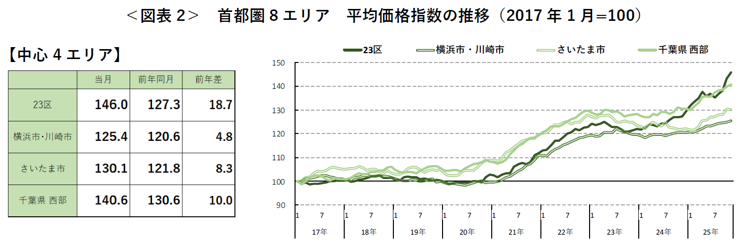 2017年1月以降最高額を更新。東京23区の平均価格は初の8,000万円台に。