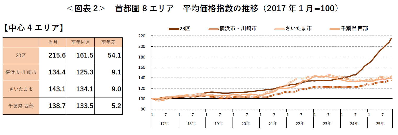 ◆東京23区は16カ月連続で2017年1月以降最高額を更新。前月比の上昇率は+3.7%と過去最高タイに。