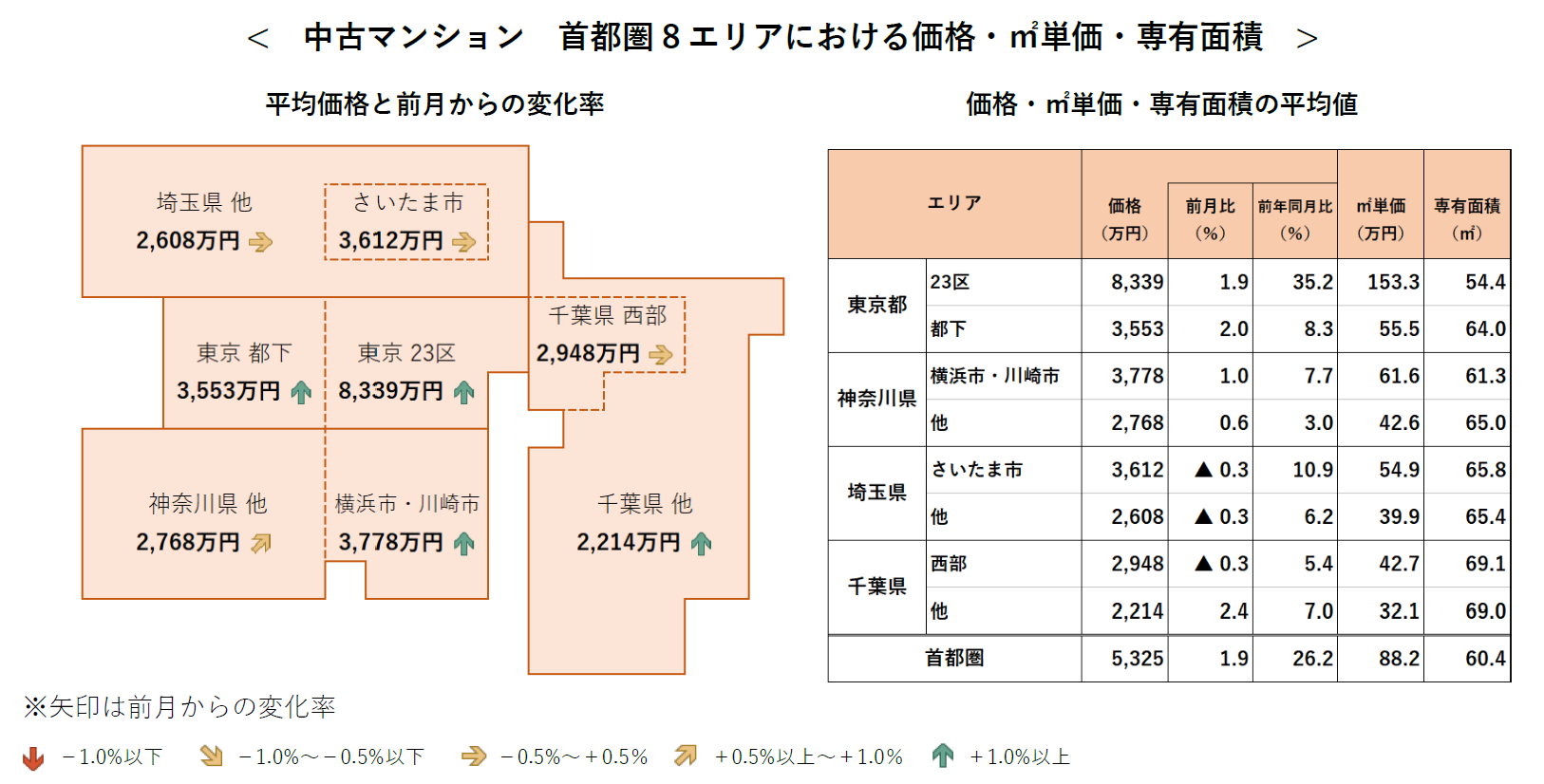 ◆首都圏の中古マンション1戸あたり平均価格は5,325万円。